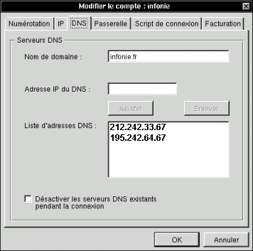 Configurer DNS et Passerelle en cliquant sur les onglets correspondants : | |||