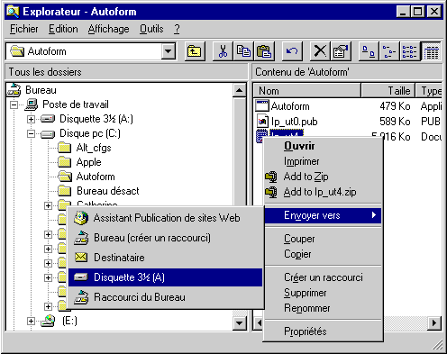 fenêtre, en cliquant avec le bouton droit de la souris sur le nom ou l'icône d'un