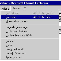 Précédente, Suivante : permet de naviguer dans les pages déjà consultées. (id Barre des outils). Monter d'un niveau : permet d'aller dans le répertoire précédent de l'arborescence (pour revenir rapidement en arrière). Page de démarrage : permet de revenir à la page de départ indiquée dans la configuration du logiciel. (id barre des outils). Courrier : Lance l'application de messagerie. News : Lance l'application de news Poste de travail : Affiche dans le navigateur le Poste de travail de l'ordinateur.